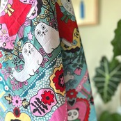 じっと眺めたくなるイラストを見える状態で使えないか悩ましい大判ハンカチーフです。
