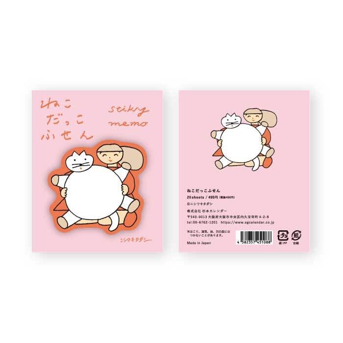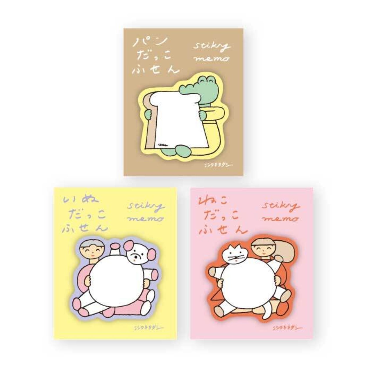 関西・関東で活躍中のイラストレーター、ニシワキタダシさんのかわいいだっこ付箋3種セットです。