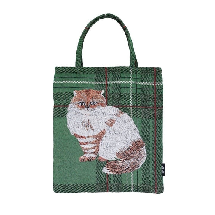 松尾ミユキさんが描くネコたちがデザインされたゴブラン織りのミニバッグ。