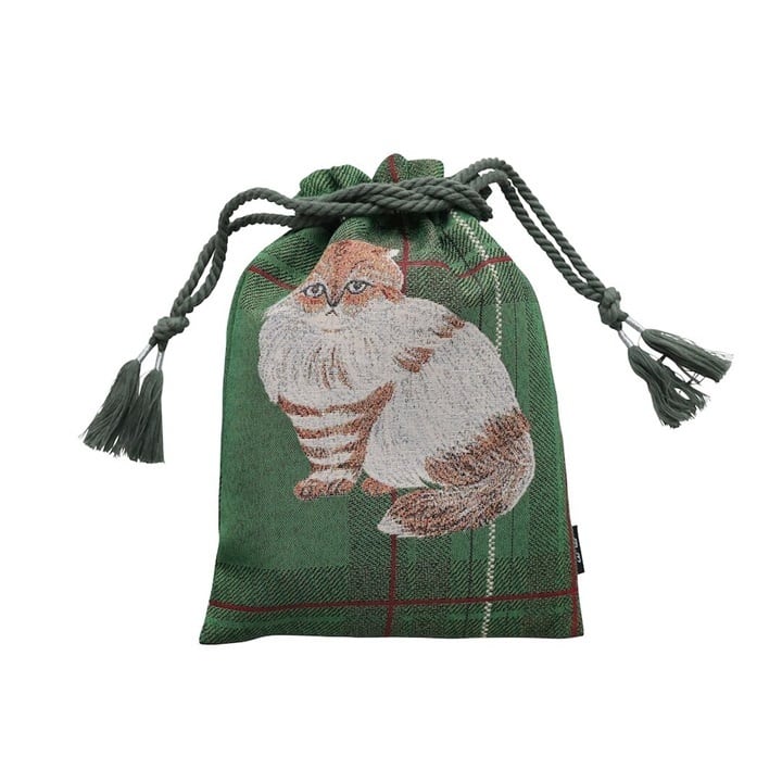 さまざまな表情やしぐさをみせてくれるネコ達が織り込まれた生地を使用した巾着が登場。