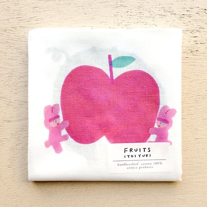 カラフルなフルーツが並んだ、いとい ゆきのかわいいハンカチ。