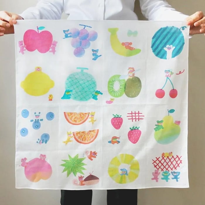 ハンカチの折りたたみ方で表に出てくるフルーツも変わるので、使うたびにうきうき楽しい気分になれそう!