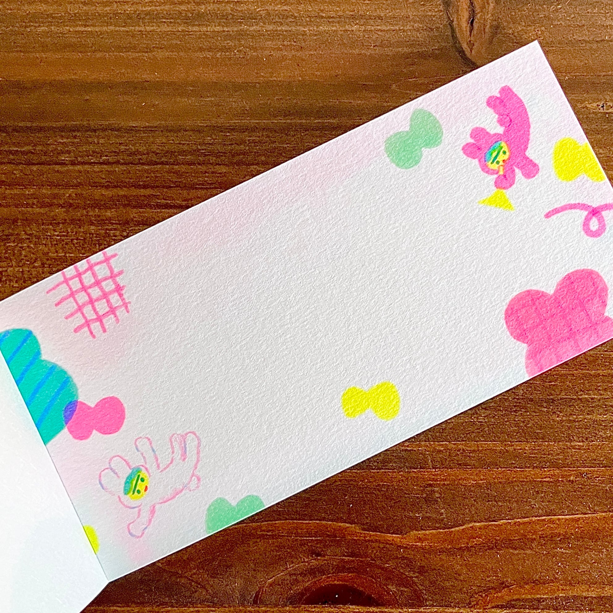 いといさんのカラフルな世界観がじっくり楽しめる、とびきり可愛い一筆箋をめくるたびうきうきしながら使っていただけます。4柄各5枚綴です。